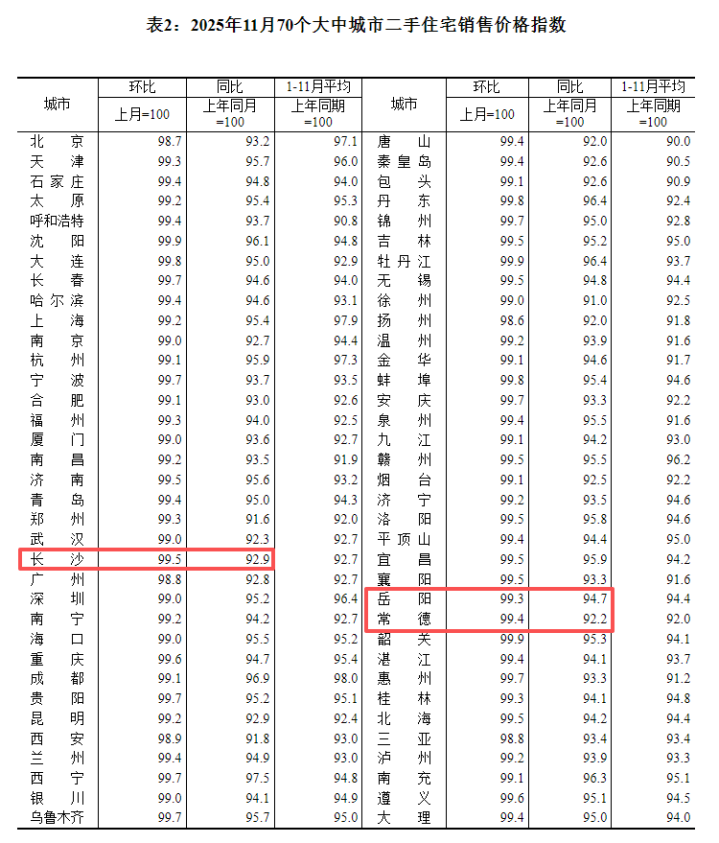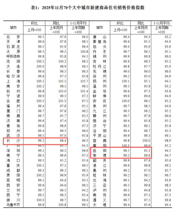 就湖南三城来看,11月长沙新址价钱环比着落0.8%,同比着落1.6%。长沙二手房价钱环比着落0.5%,同比着落7.1%;11月岳阳新址价钱环比着落0.5%,同比着落4.7%。岳阳二手房价钱环比着落0.7%,同比着落5.3%;11月常德新址价钱环比着落0.8%,同比着落3.4%。二手房价钱环比着落0.6%,同比着落7.8%。